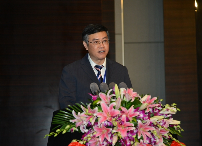 香港商报社长陈寅于贵阳举行的「全球商報论坛」发表演说。