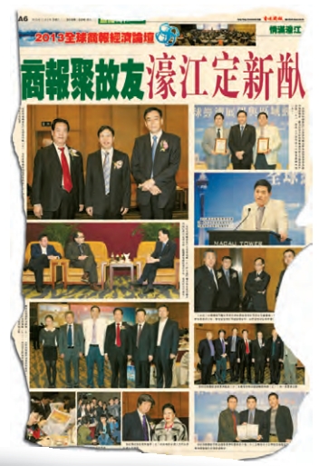 2013年12月3日,「2013全球商報經濟論壇︰全球經濟展望與區域經濟合作」首次在澳門舉辦,獲得中央駐澳門特區官員及澳門政商界精英翹楚的大力支持,出席的成員來自印尼、比利時、德國、加拿大、美國等地。此次論壇聚焦全球經濟展望與區域經濟合作,并對上海自貿區、前海、南沙、橫琴等機遇進行了深層次探討,被譽為年度海內外矚目盛事。同期,「第5屆全球商報聯盟理事會會議」選出新一任理事會成員的同時,也總結了「全球商報聯盟」成立六年半以來工作成效卓越,成員至今已擴展到62家。