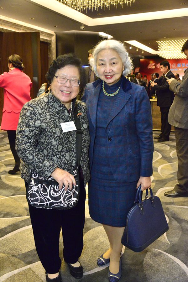 基本法委員會副主任梁愛詩與港區全國人大代表劉佩瓊(左)相談甚歡。記者 馮俊文攝