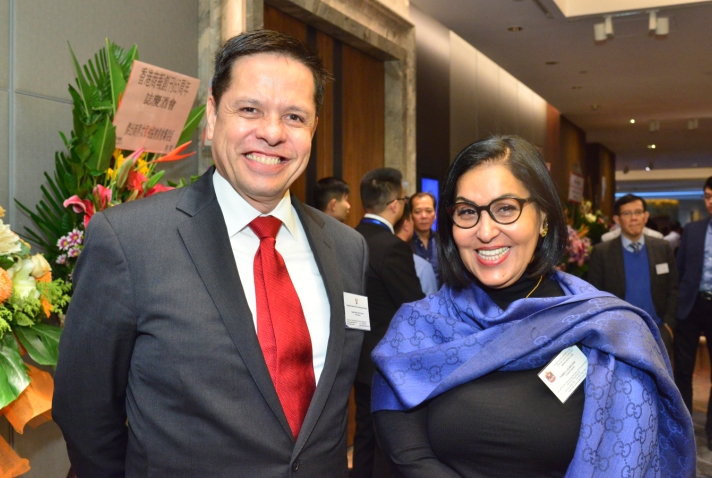秘魯駐港總領事Sergio Manuel Avila Traverso(左)与阿拉伯联合酋长国驻港澳领事娜比拉·沙母希