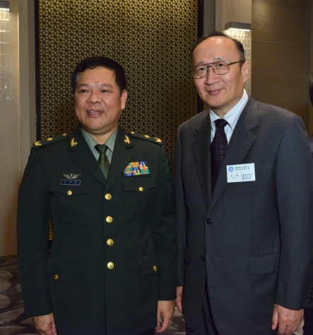 解放軍駐港部隊參謀長何啟茂(左)與新華社香港分社社長孫勇。
