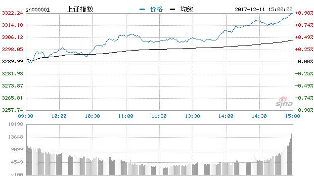 【香港商報網訊】12月11日,滬深兩市高開高走,題材股與權重股全線飄紅。截至收盤,滬指漲0.98%報3322.24點,深成指漲1.9%,創業板指漲1.38%。盤面上,大數據概念股領漲兩市,板塊漲幅超4%,銀信科技、海量數據等8股漲停。此外,家電、白酒、免疫治療、人工智能、新零售等板塊均有不錯表現。