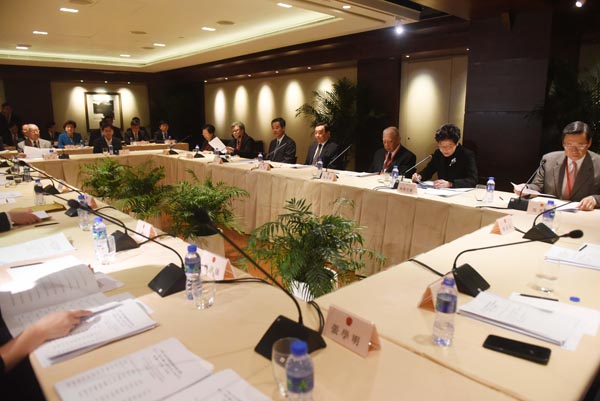 昨日,港區第十三屆全國人大代表選舉會議主席團第二次會議舉行,全國人大常委會副委員長兼秘書長王晨(右四)出席並講話,主席團常務主席林鄭月娥主持會議。中新社