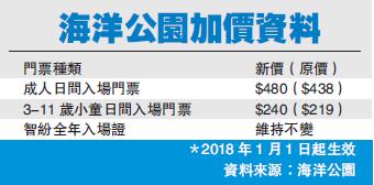 海洋公園經營繼續錄得赤字,宣布明年元旦起加價約9%。