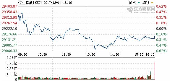 恒生指数今早高开0.39%后,盘中震荡下跌,午盘后进一步下探,最低29047.61点,跌幅近170点,临近收盘,在地产及啤酒饮料行业公司的带领下收复部分失地。截止收盘,恒生指数跌0.19%,报29166点;国企指数微涨0.10%,报11531点;红筹指数涨0.52%,报4300点;