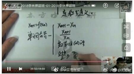 多名网友发微博称,2018年全国硕士研究生统一招生考试数学科目出现“神押题”,一名名为“李林”的教师在考前押题视频中举的例题与实际考试试题十分相似。截至发稿,部分微博引起超过2000条转发。