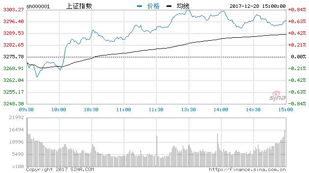 新浪财经讯 12月28日消息,三大股指早盘小幅低开后震荡走高。早盘,汽车整车、次新股板块的积极影响下,沪指低开后由绿翻红并震荡走高,深成指上午冲高明显并持续震荡上行,创业板走势大体相同。临近上午收盘,两市出现小幅回落后继续冲高,在证券、自贸港等板块的积极影响下,沪指呈现震荡上行格局,深成指与创指走势大体相同,在平盘线上方高位震荡。午后,三大股指冲不断冲高,沪指在周期板块的带动下,一改昨日的颓势,高位震荡站上3300点后有所回落,创指午后持续走低。尾盘,沪深两市依旧在平盘线上方震荡,创指有所回落一度由红翻绿。上午冲高的次新股、新能源车等板块出现小幅回落。盘中,券商板块急速走强,龙头中原证券(6.490, 0.59, 10.00%)封板;招商公路(15.220, 1.38, 9.97%)再受资金热捧三连板,截止收盘,沪指报3296.38,涨0.63%;深成指报10974.01,涨0.58%;创指报1745.02,跌0.01%。