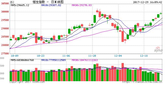 港股上午收升105点,午后持续在高位横行。恒指年内升幅达3成半,近7900点。为历史以来最高高。今日可以升收市,更在30000点附近,已是差不多了。2018年仍然可以继续看好一点。