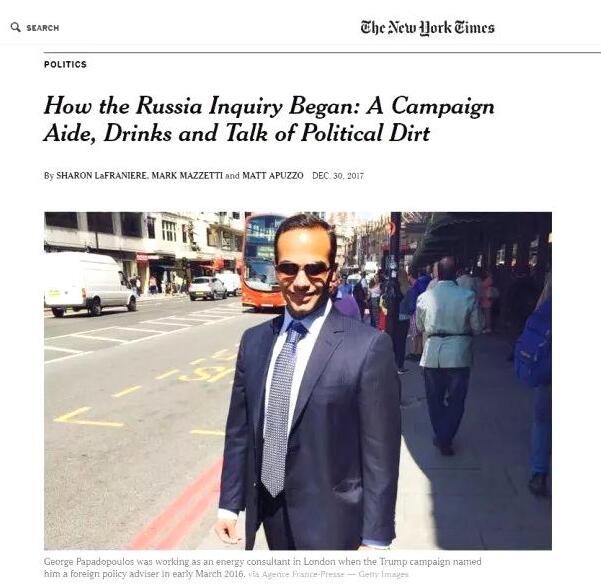 《纽约时报》年前援引美国和其他国家4名前任或现任官员的消息报道称,2016年5月,特朗普竞选团队成员帕帕多普洛斯邂逅澳大利亚前外长、时任澳驻英国高级专员的亚历山大·唐纳,并对后者透露俄罗斯政府握有特朗普竞选对手、民主党候选人希拉里·克林顿的“黑材料”。同年7月,互联网上开始爆出大量民主党内部电子邮件。《纽约时报》称,唐纳向美国联邦调查局通报了与帕帕多普洛斯的对话内容,并直接促成后者对于特朗普是否在美国大选中勾结俄罗斯操控大选的调查。帕帕多普洛斯是“通俄门”调查第一个向特别检察官团队认罪的特朗普前团队成员。