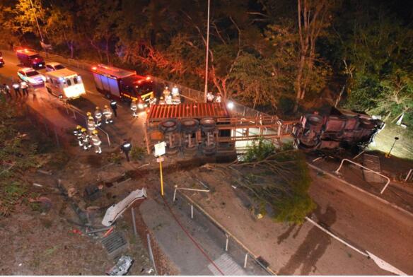 凌晨12時過後,消防宣布封鎖意外現場,因涉事貨櫃車內有化學物品,以免再發生意外,多輛消防車及救護車在現場戒備。