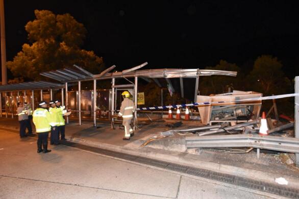 巴士站被撞至斷柱。圖:星島