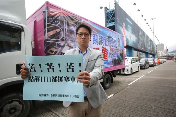 鄧家彪發起汽車遊行抗議新界東經常塞車。