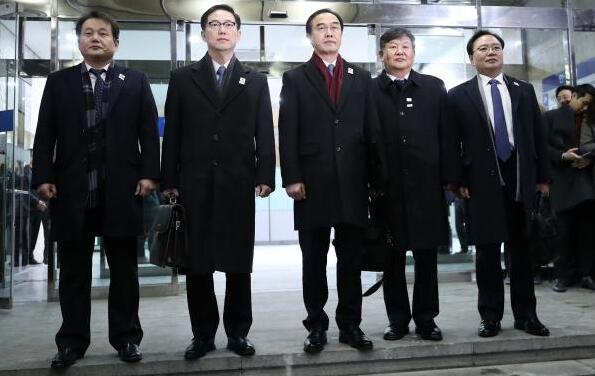据韩联社报道,当地时间上午7时30分,韩国统一部长官赵明均率团的5名韩方代表从首尔市三清洞南北会谈本部出发,前往板门店“和平之家”会谈场所。央视新闻报道称,赵明均出发前发表了简短讲话,五名韩方代表合影后乘车出发。除首席代表赵明均外,韩方代表团还包括统一部次官(副部长)千海成、文化体育观光部第二次官卢泰刚、国务总理室审议官安文铉(音)、平昌冬奥会暨东残奥会组委会企划事务次长金起弘。