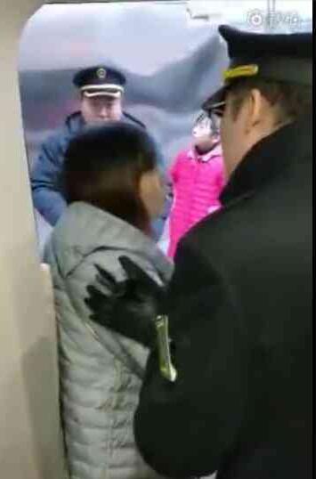 罗女士:后来有乘警过来,把我老公放了下来,我们三个都上了车。