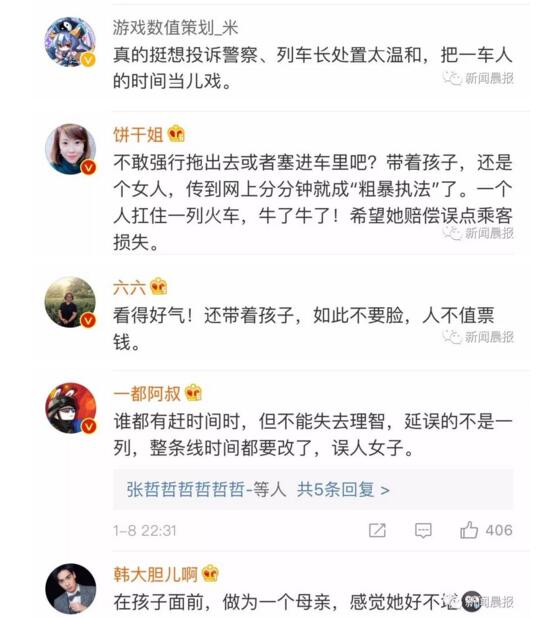 扒高铁车门女子:我老公没有迟到 也没致列车延误