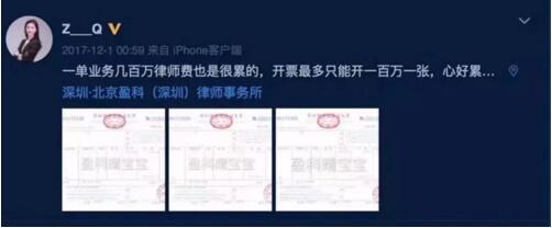 WhitePigeonWindbell:未执业满三年是不能当合伙人的,她对外宣传自己是合伙人(微博V认证和朋友圈),要么是资格违规,要么是冒充合伙人,律师有职业规范的,要受律协监督,每年还有考核,司考还有一科是职业道德规范…她的行为在法学界看来是很出格了,不仅有违职业道德还违规了。