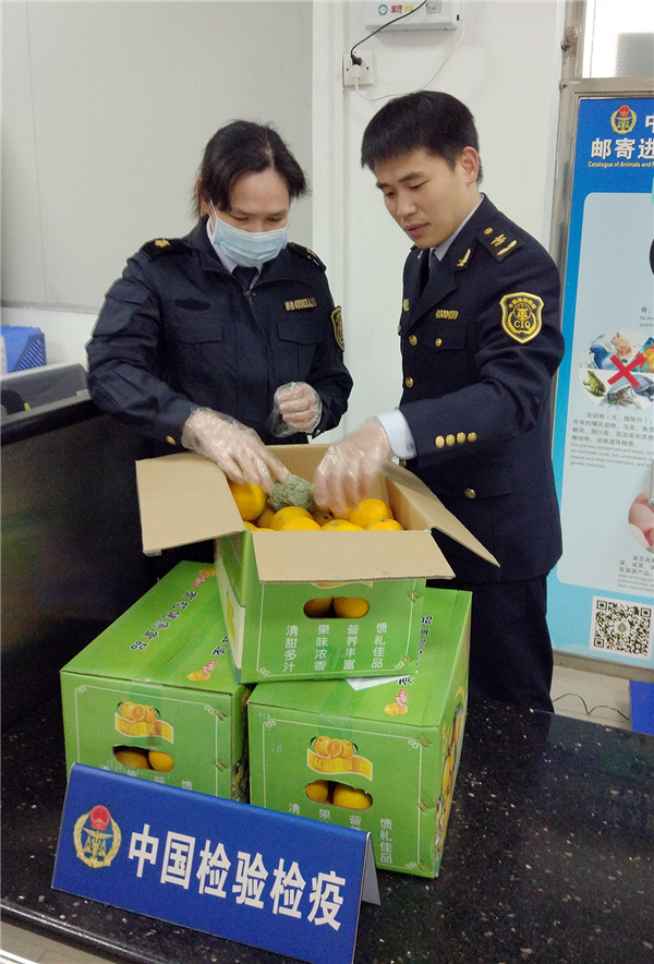 据了解,该名旅客驾车入境时,工作人员发现其车辆后座有3箱疑似装有水果的纸箱,查验发现里面装满橙子。根据《中华人民共和国禁止携带、邮寄进境的动植物及其产品名录》规定,新鲜水果禁止携带入境,且该名旅客未办理相关检疫审批手续,工作人员依法对该批物品作截留销毁处理。