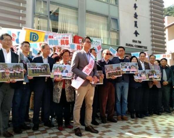 鄧家彪(左4)報名參加新界東補選。