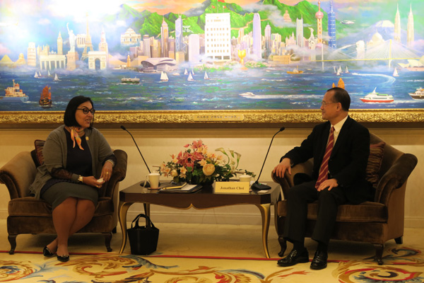 蔡冠深(右)與阿拉伯聯合酋長國駐港總領事交流。
