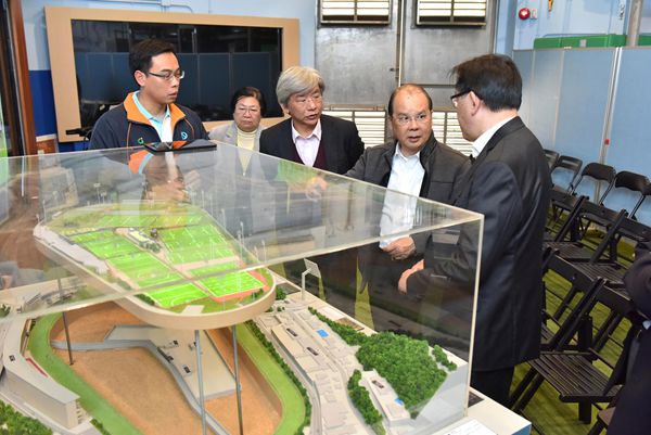 張建宗(右二)早前參觀跑馬地地下蓄洪計劃。 網誌圖片