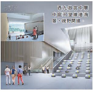 西九故宮由本地建築師嚴迅奇負責設計,博物館樓高5層,上寬下聚的方形結構,被公眾形容像是一個「鼎」,設計融入中國傳統視藝文化。博物館中層外望維港,高層中庭則遠眺大嶼山,觀景開揚之餘,亦富有現代感。西九故宮於2022年建成后,將成為香港最具代表性的文化地標。