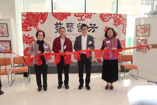 (右起)呂慧珠、李秀恒、李業富、劉佩驊為剪紙展覽剪綵。