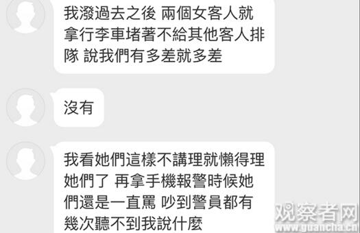 此外,该店员还称,之后两位女客人将行李车堵着不让其他客人排队,也影响了经营。