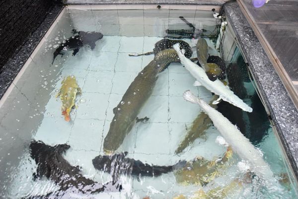 三層村屋地下設有水池飼養多款罕見魚類。