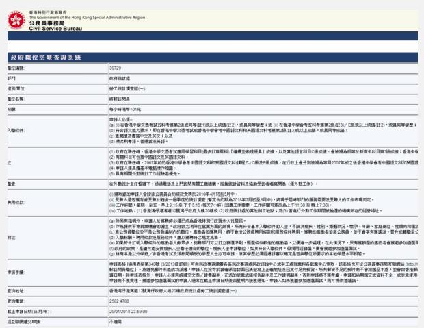是次空缺將於1月29日截止,並只接受郵遞申請。有分析認為,統計處只用短短7天的時間進行招聘,反映競爭應該很激烈。