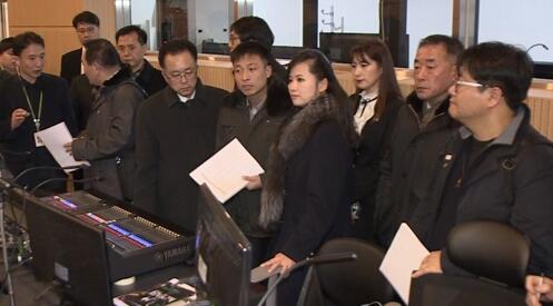 资料图片:1月21日,朝鲜三池渊管弦乐团团长玄松月率队查看江陵艺术中心的演出设施。(韩联社)