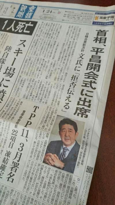 由於韓方近日提出對「慰安婦協議」的質疑,包括《產經新聞》在內等日媒稱,日本政府早前考慮以國會開會為由婉拒派員出席平昌冬奧會相關儀式,以表達對韓國的抗議。但安倍昨天表示,政府到底應該怎麼做,在經過深思熟慮之後作出判斷是執政者的責任。日媒指出,朝鮮半島情勢是促使安倍政府重新思考的重要原因之一,來自美方的壓力也要求安倍出席。