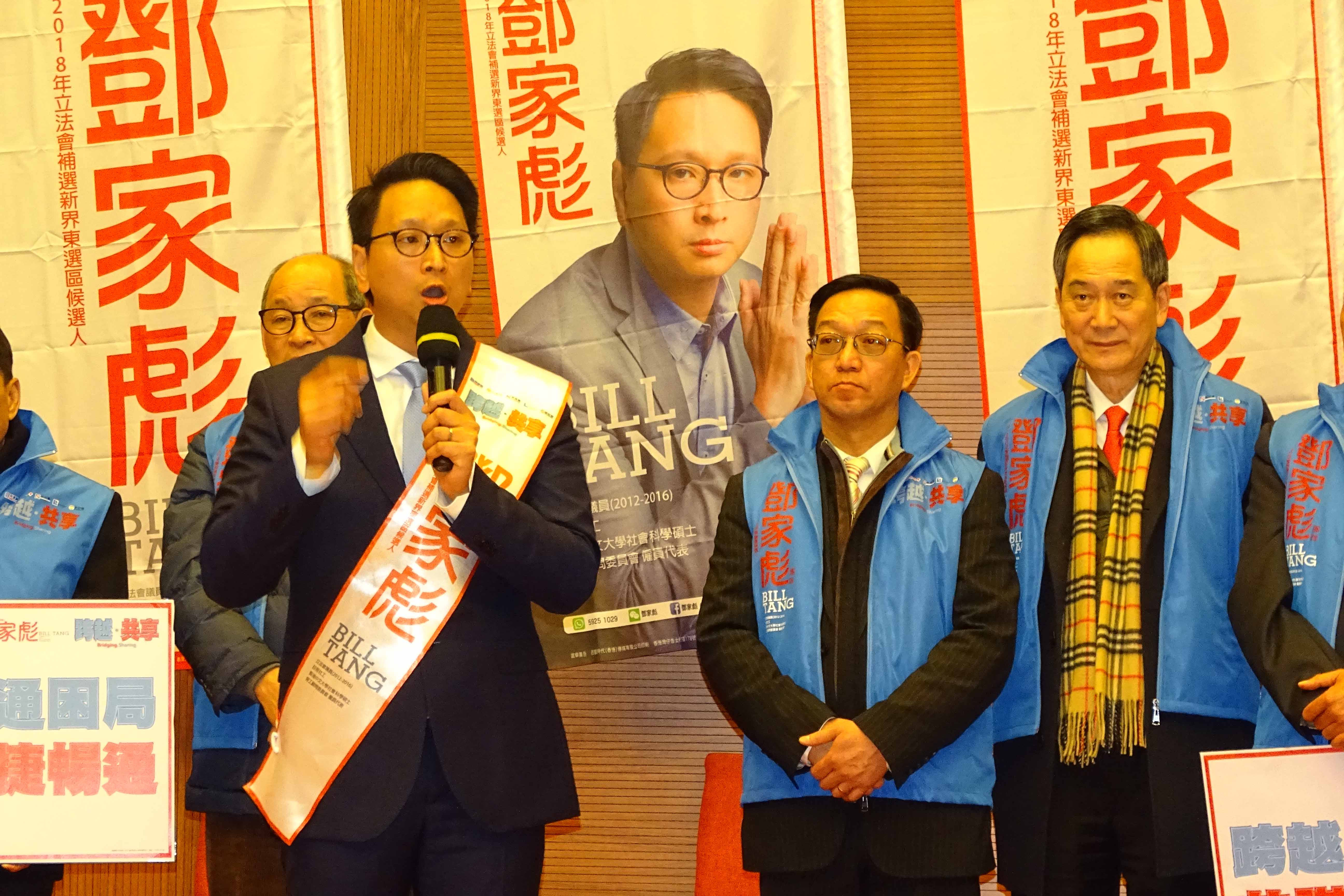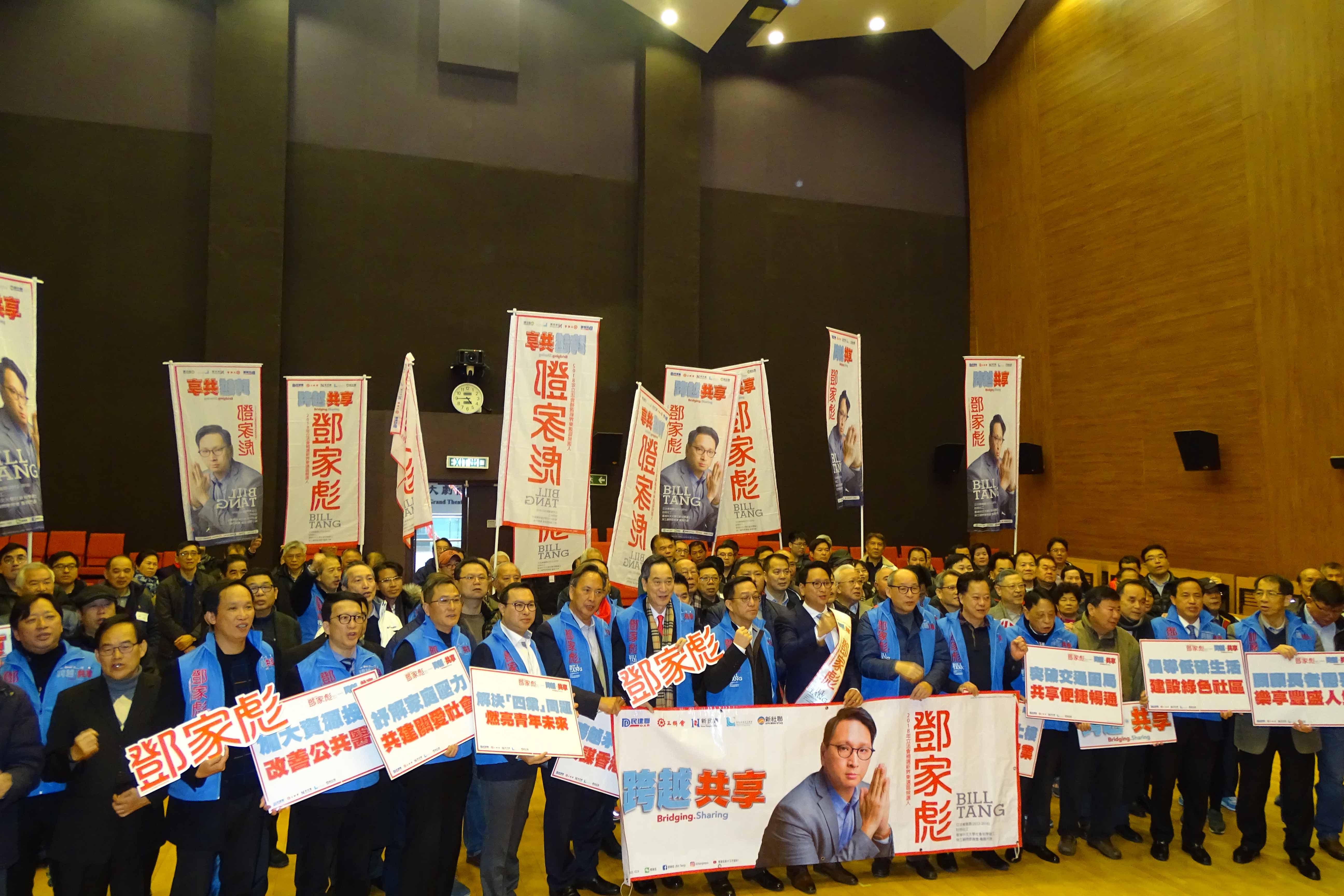 新界東各鄉事委員會的領袖又分別讀出鄧家彪的8項政綱,包括「跨越矛盾紛爭,共謀香港發展」、「突破交通困局,共享便捷暢通」、「加快基層上樓,協助市民置業」、「紓解家庭壓力、共建關愛社會」、「解決『四業』問題,燃亮青年未來」、「關顧長者需要,樂享豐盛人生」、「加大資源投入、改善公共醫療」、「倡導低碳生活、建設綠色社區」,為鄧家彪打氣。