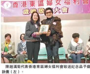 蘇詠儀赞揚該會成立至今一直堅持服務群眾,安老護幼,為婦女謀福利,對社會貢獻良多。她指出,政府一直關心長者福祉,除在社區宣揚和推廣敬老、護老的信息外,亦撥備了大量資源,近年推出了長者社區照顧服務券試驗計劃、智友醫社同行先導計劃、長者兩元乘車優惠計劃等,冀助長者安居樂業,安享晚年。