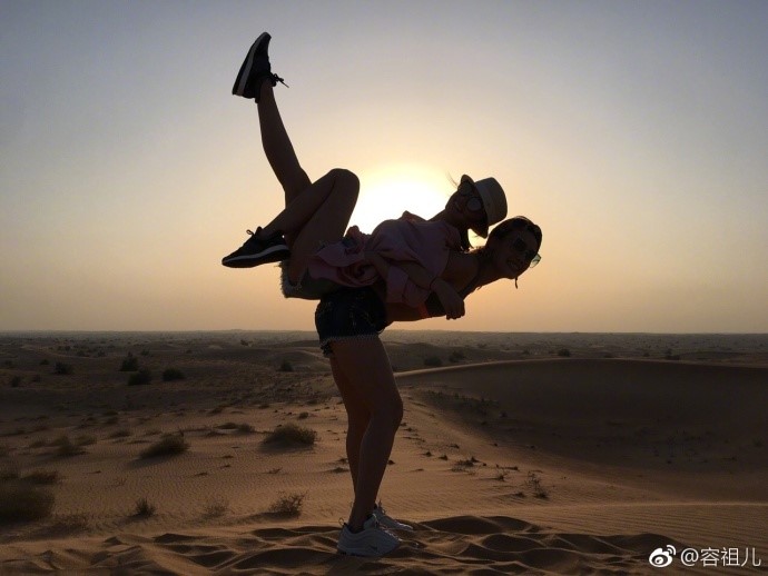 迪拜的傍晚更加迷人,阿SA和容祖兒去的At.mosphere餐廳,位於世界最高建築哈利法塔的122層,是欣賞迪拜日落的最佳位置。這裏也是吉尼斯世界紀錄在冊的世界最高的餐廳。遊客可以在這裏享受美好的下午茶,配著烤餅和蘑菇鹹派,談天說地,把煩心事拋在腦後。也可以預訂晚餐座位,品嘗大廚烹製的高檔菜肴,在飽覽壯麗的城市美景的同時暢享世界一流的美食。 在沙漠沖砂 擺拍裝酷