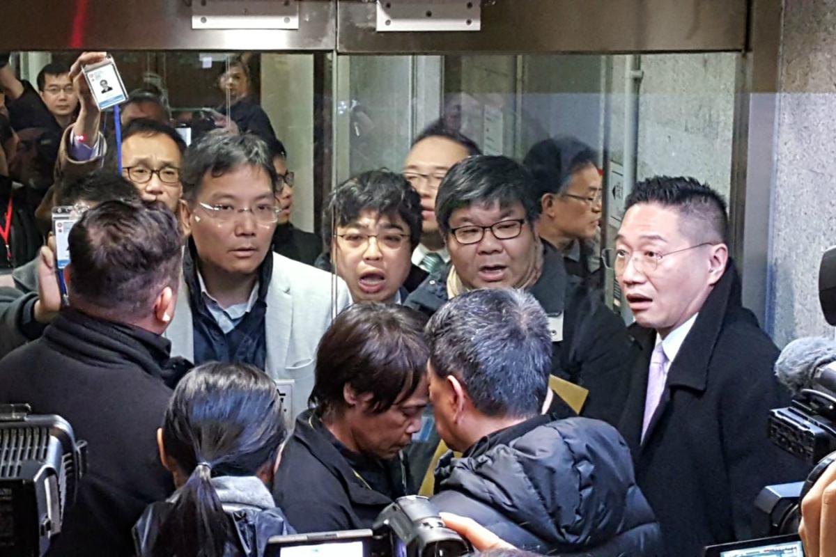 東區區議員兼立法會批發及零售界議員邵家輝指,他一早到達會議室,一眾泛民議員及示威者企圖衝前入內,部分區議員未能入內,故上前交涉要求開門讓議員進入。隨後由東區區議會主席黃建彬介入後,保安批准區議員入內。