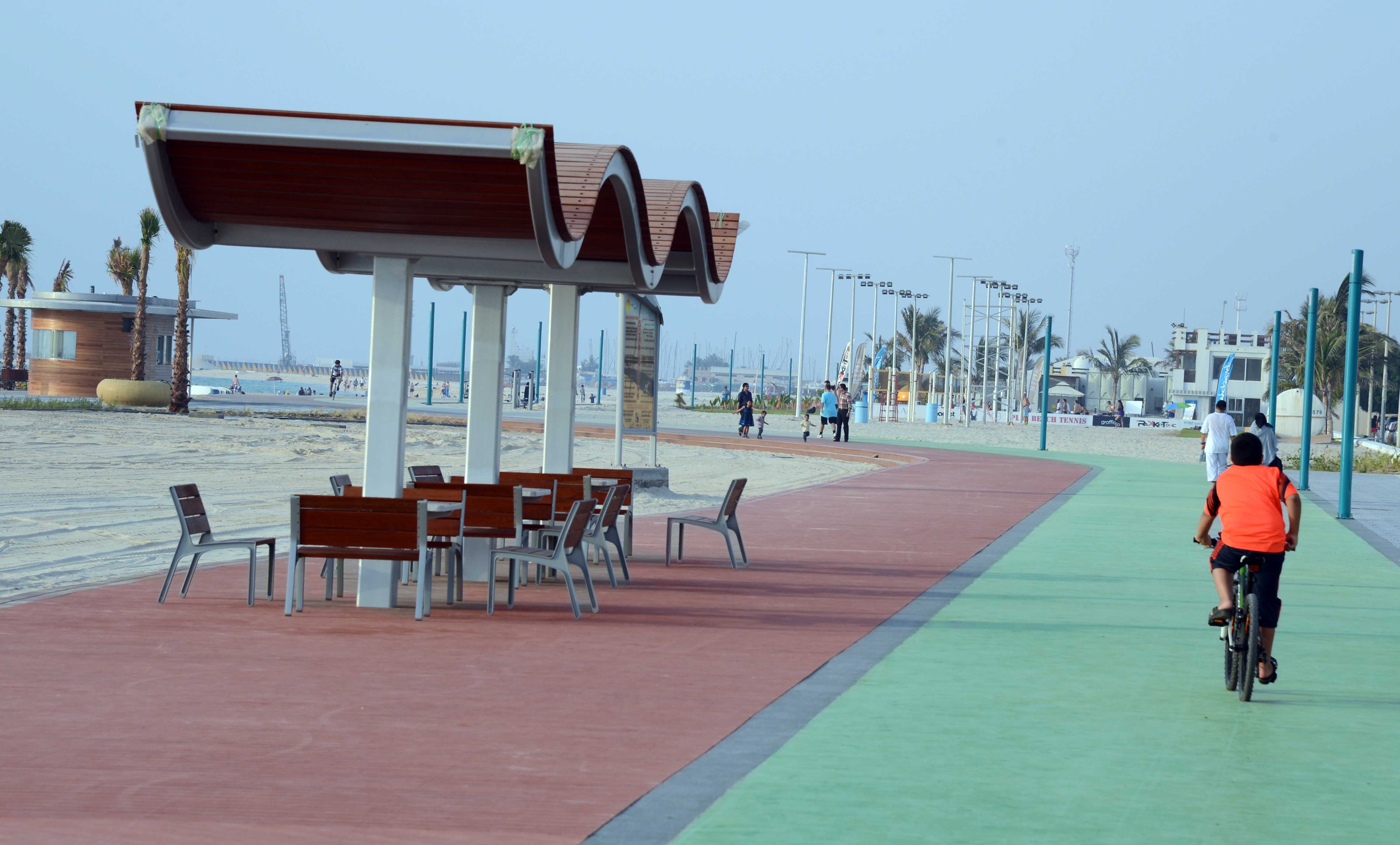 朱美拉濱海大道全長14公里,從帆船酒店一直延伸到新的迪拜運河,這條海濱路備受家庭遊客和各類跑者的喜愛,奔跑的同時可以一覽迪拜最獨特最別致的風景。朱美拉棕櫚島步道也不同尋常,5公里長的步道延伸進阿拉伯灣,讓人不禁停下腳步觀賞阿拉伯灣與迪拜天際線的美景。一邊是碼頭水域,一邊是摩天大樓,迪拜碼頭4.5公里長的海濱長廊為你提供獨具碰撞性的視覺體驗。
