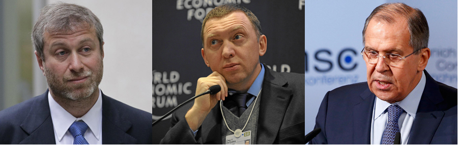 (左起)英超聯班霸車路士的班主艾巴莫域治、俄鋁主席歐柏嘉及俄外長拉夫羅夫均在「普京名單」的列表之上。網絡圖片