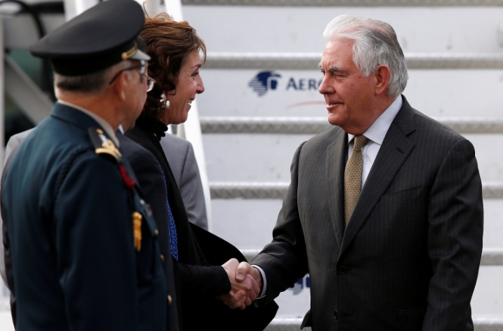 美國國務卿蒂勒森周四抵達墨西哥,美國駐墨西哥大使雅各布森到場接機。 路透社