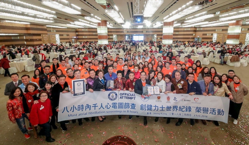此外,香港心臟專科學院更與屯門獅子會攜手合作,於昨天舉行首個大型長者「心房顫動社區心電圖篩查」活動,邀請過千位長者接受心電圖檢測,創造了8小時內最多人同時進行心電圖檢測的健力士世界紀錄,并由監證人頒發完成獎狀。