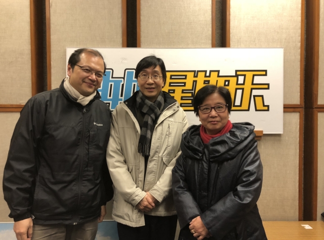 港大微生物學系講座教授袁國勇(中)出席電台節目談流感最新情況。