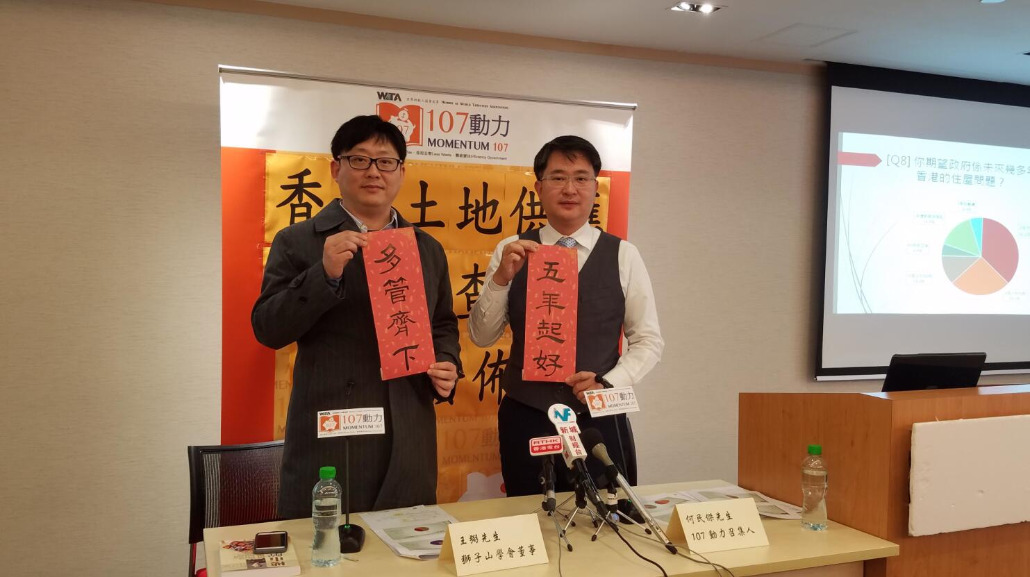 「107動力」在上月委託香港大學民意研究計劃,以隨機電話形式訪問了超過500名18歲或以上本港居民,結果發現有逾九成人認為香港現時住屋問題屬嚴重,七成四人認同香港缺乏住宅用地。亦有四成六人對現屆政府增加住宅供應的能力缺乏信心,但同時有三成人相信現屆政府有能力增加住宅供應。