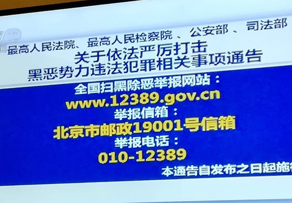 四部門發出最后通牒 限黑惡勢力24天內自首