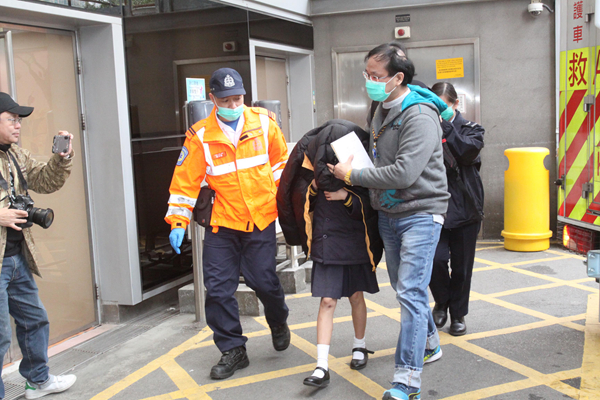 女生送院檢查,警員為她披上羽絨衣保暖。記者區天海攝