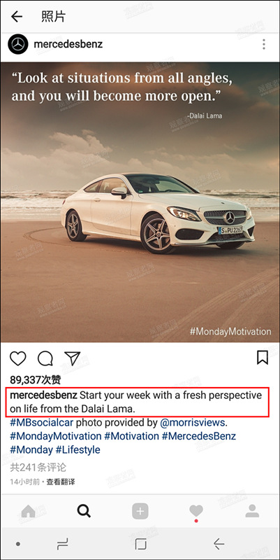 甚至,奔驰还为这张宣传照配上了这样的文案:每周和你分享一个来自达赖喇嘛的生活观点。