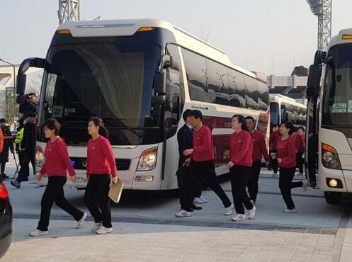 朝鲜艺术团员进入演出场地(图片来源:韩国《中央日报》)