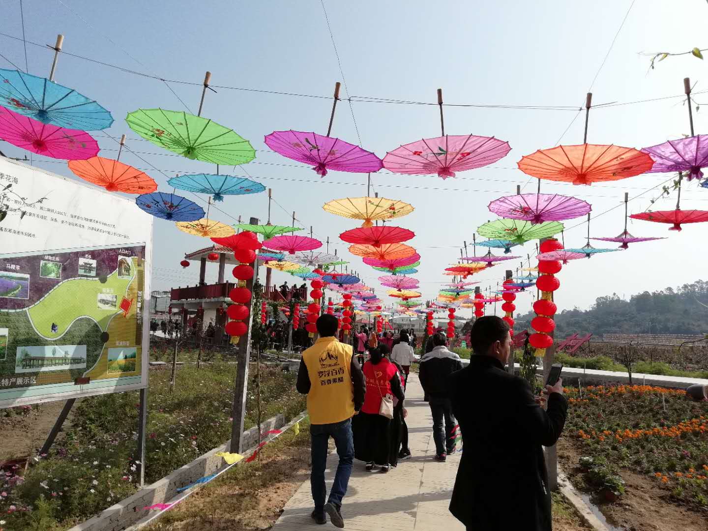 冬日暖阳下,城村四季花海园里游人如织。行走于五彩油纸伞长廊中,如梦似幻,微风拂过一朵朵艳红的月季,小巧可爱的格桑花摇曳着枝头……漫步“四季花海”,感受乡愁情怀,用心感受城村特有的旅游元素,用镜头和笔墨捕捉和描绘城村的独特魅力。