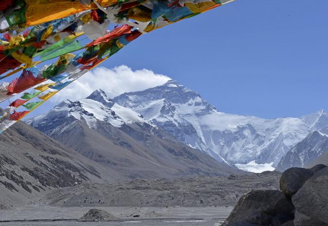 世界最高峰珠穆朗玛峰在蓝天下分外壮丽 新华社资料图