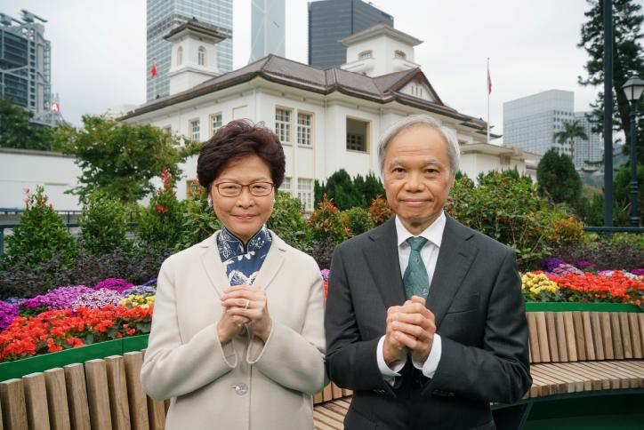 據悉,因應早前的大埔公路發生致命車禍,今年特首農历新年賀辭重新拍攝,盡量避免過於喜慶,場景及服飾亦刻意平實,只穿上藍色旗袍配白色外套,并因應狗年加插3隻警犬在禮賓府玩耍及接受警員訓練的片段,還有花市街景、年花和全盒等,而片尾則是林鄭與丈夫站在禮賓府外向市民拜年。