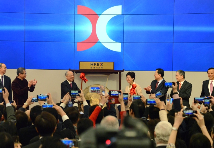 图为大年初五港交所举行开市仪式的场景。