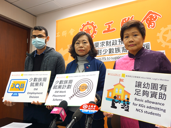 工聯會立法會議員麥美娟(中)呼籲政府幫助少數族裔。